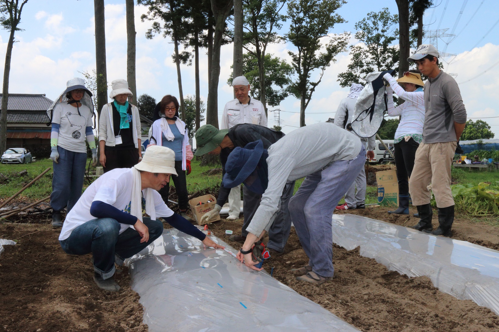 9月21日の自然栽培の会は、前回畑に敷いたポリマルチに穴を開けて、三浦大根と宮重大根の種を蒔きます。 その後はポリマルチ無しの裸地の畝を作って、小松菜、のらぼう菜、みやま小蕪の種蒔きを行います。 残りの時間はオクラをはじ