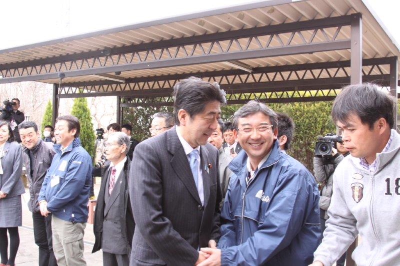 安倍首相が昼食会場となった鈴木社長宅に到着したのは午後1時12分。車を降りた首相は出迎えた約30人近くの関係者一人一人と握手して和室大広間に入った。首相と昼食をともにしたのは根本匠復興相、森雅子消費者行政担当相、佐藤雄平福島県知事と農業生産者など約20人。