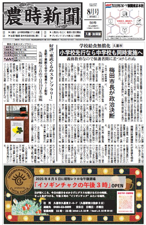 ▶1面=久喜市が決断した「学校給食無償化になったら小学校も中学校も同時に実施する
