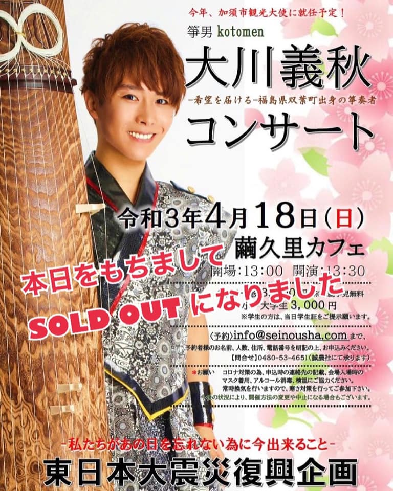 4/18、コロナ対策を行いながら、 今年、加須市観光大使に就任された琴奏者kotomenこと 大川義秋さんのコンサートを無事に開催することが出来ました。