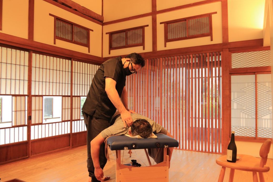 離れ別邸コースでは、ゆっくりとくつろげる空間での施術です。こちらの宿には2021年の冬にアンセルさんがお越しくださいました。