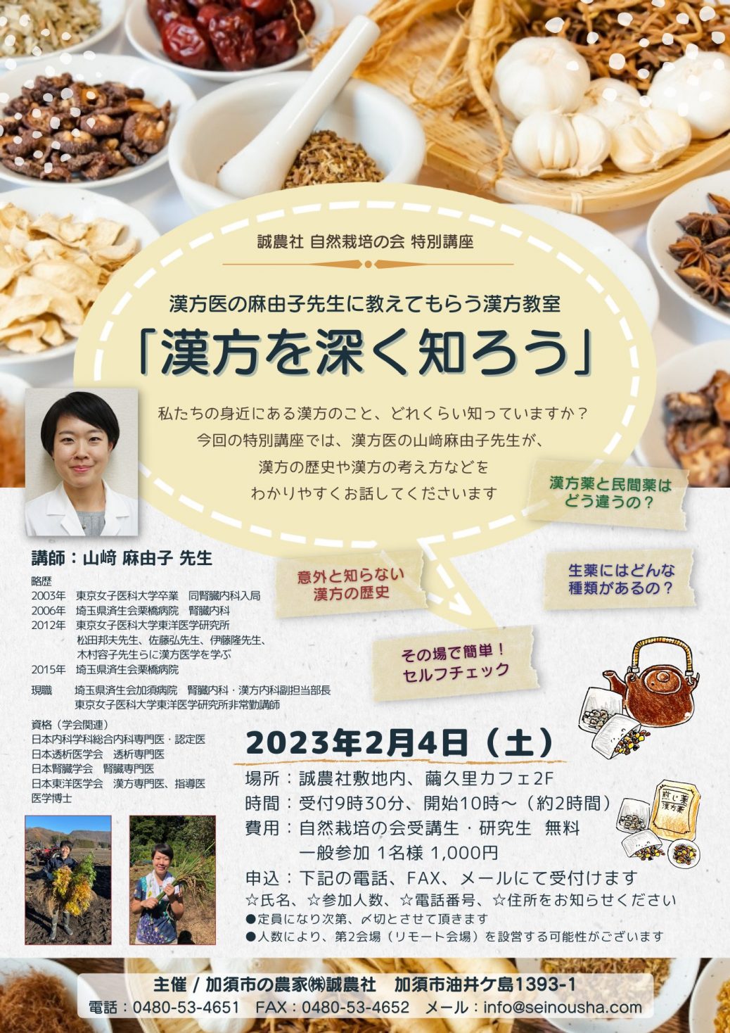「自然栽培の会特別講座・漢方を深く知ろう」のご案内🌿